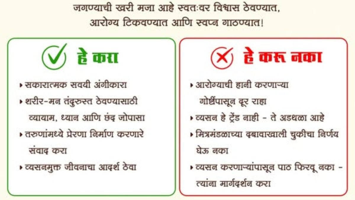 चला, व्यसनांना “नाही” म्हणूया आणि आरोग्यदायी जीवनशैलीचा स्वीकार करूया!
