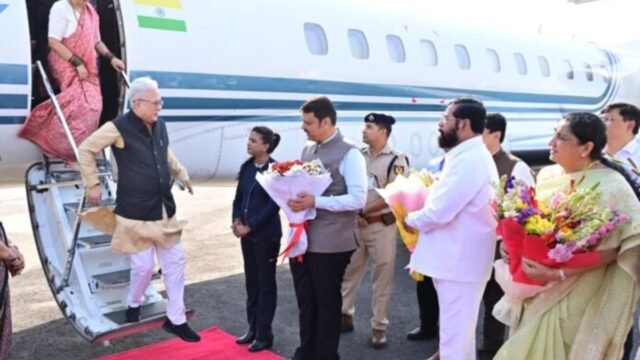 मुंबई : महाराष्ट्राच्या राज्यपालपदी नियुक्ती झालेले तेलंगणाचे राज्यपाल जिष्णु देव वर्मा यांचे सोमवार दि. ९ रोजी पत्नी सुधा देव वर्मा यांचेसह मुंबई येथील छत्रपती शिवाजी महाराज आंतरराष्ट्रीय विमानतळावर आगमन झाले.मुख्यमंत्री देवेंद्र फडणवीस, उपमुख्यमंत्री एकनाथ शिंदे, उपमुख्यमंत्री सुनेत्रा अजित पवार, विधानपरिषदेचे सभापती प्रा राम शिंदे, राजशिष्टाचार मंत्री जयकुमार रावल, सांस्कृतिक कार्य व माहिती तंत्रज्ञान मंत्री ॲड. आशिष शेलार, मुंबईच्या महापौर रितू तावडे, मुख्य सचिव राजेश अग्रवाल, पोलीस महासंचालक सदानंद दाते, पोलीस आयुक्त देवेन भारती आदींनी त्यांचे स्वागत केले. मंगळवार दि. १० मार्च रोजी दुपारी ४.३० वाजता नवनियुक्त राज्यपालांचा लोकभवन येथे शपथविधी होणार आहे.