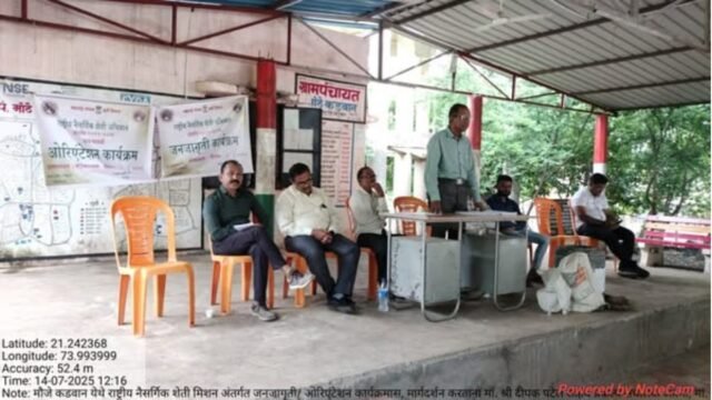 (नंदुरबार) राष्ट्रीय नैसर्गिक शेती मिशन अंतर्गत मौजे कडवान, ता. नवापूर, जि. नंदुरबार येथे शेतकरी जनजागृती व ओरिएंटेशन कार्यक्रमाचे आयोजन करण्यात आले. या कार्यक्रमात नैसर्गिक शेतीचे फायदे, शाश्वत उत्पादनासाठी जैविक घटकांचा उपयोग आणि शेतकऱ्यांची प्रत्यक्ष सहभाग वाढवण्यासाठी विविध मार्गदर्शन सत्र आयोजित करण्यात आली होती.