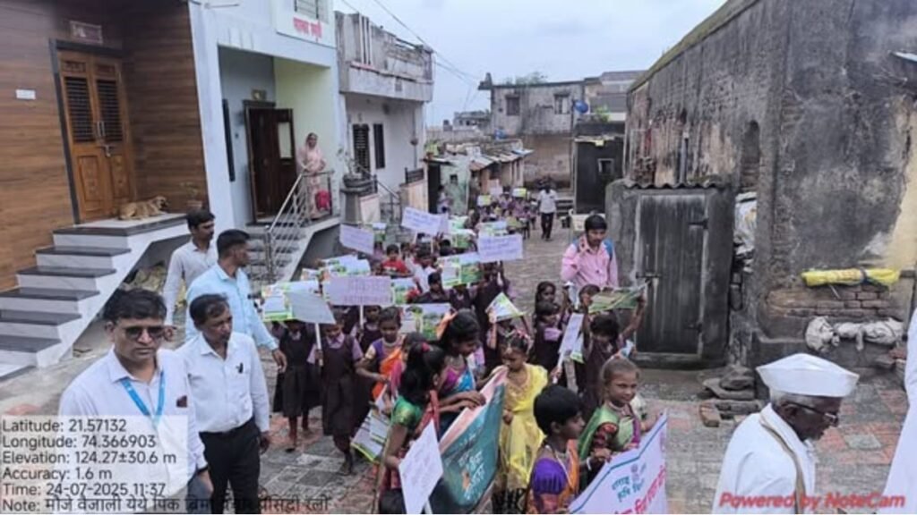 मौजे वैजाली येथे कृषी विभागाच्या विविध योजनांची माहिती पोहोचवण्यासाठी अनोख्या पद्धतीने प्रचार प्रसिद्धी रॅलीचे आयोजन करण्यात आले. या रॅलीमध्ये भजनी मंडळींनी पारंपरिक भजनाच्या माध्यमातून तर जिल्हा परिषद शाळेतील विद्यार्थ्यांनी घोषवाक्यांद्वारे नागरिकांमध्ये जनजागृती केली.