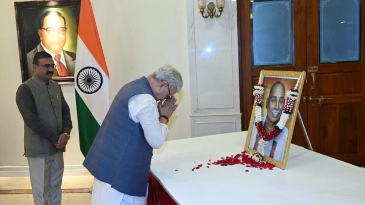 मुंबई : राष्ट्रसंत तुकडोजी महाराज यांच्या जयंतीनिमित्त राज्यपाल जिष्णु देव वर्मा यांनी लोकभवन मुंबई येथे त्यांच्या प्रतिमेला पुष्पांजली वाहून अभिवादन केले.