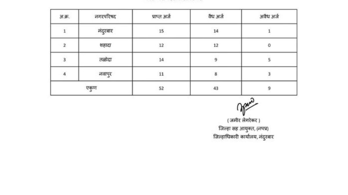 नंदुरबार, शहादा, तळोदा व नवापूर नगरपरिषदांचा अर्ज निहाय तपशील जाहीर ![]()