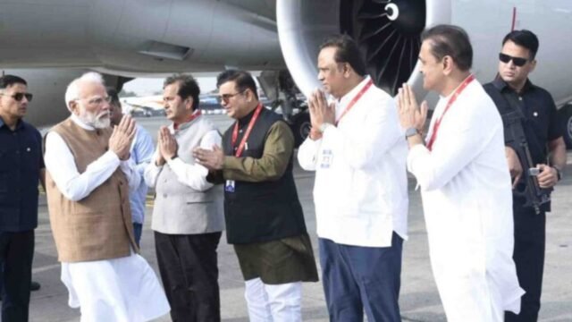 मुंबई: प्रधानमंत्री नरेंद्र मोदी यांचे दुपारी ३.४५ वा. छत्रपती शिवाजी महाराज आंतरराष्ट्रीय विमानतळ, मुंबई येथे आगमन झाले.