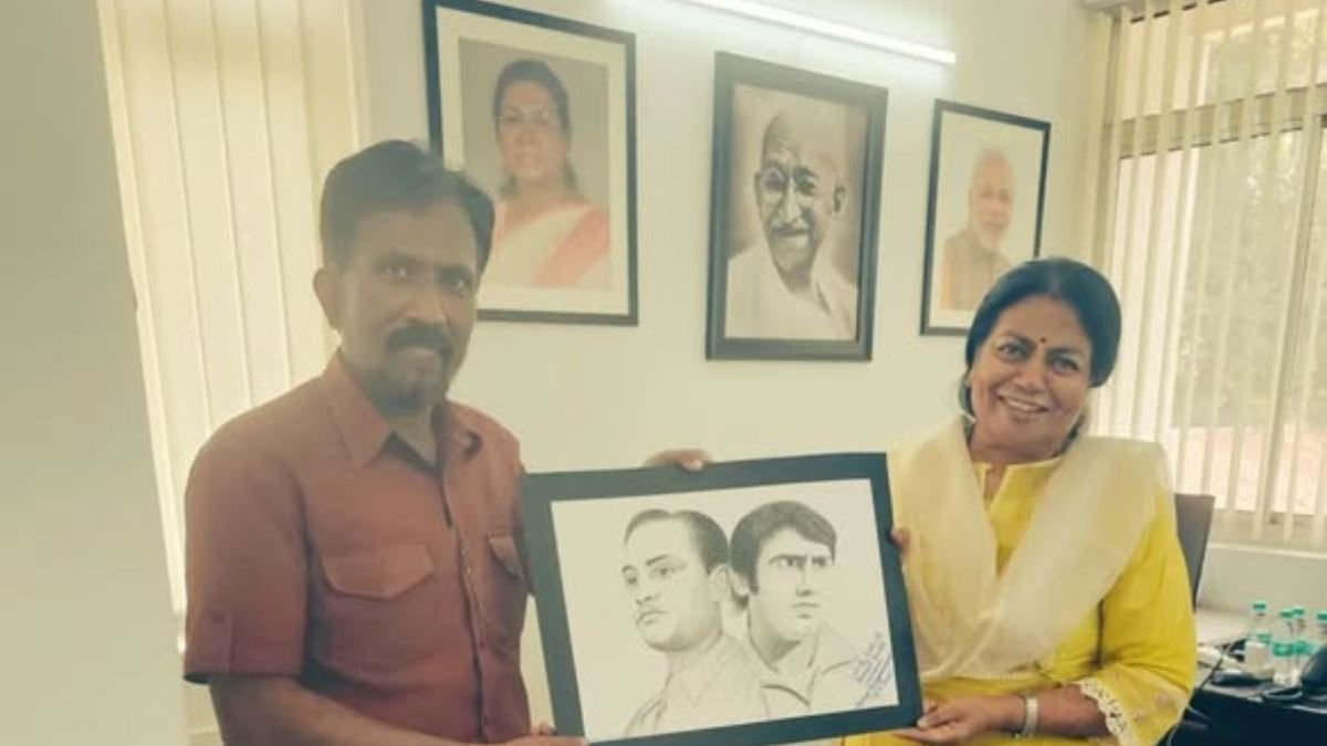 Shailendra Khairnar, a world-renowned stippling artist from Dhule district, paid a courtesy call on Resident Commissioner and Secretary R. Vimala at Maharashtra Sadan.