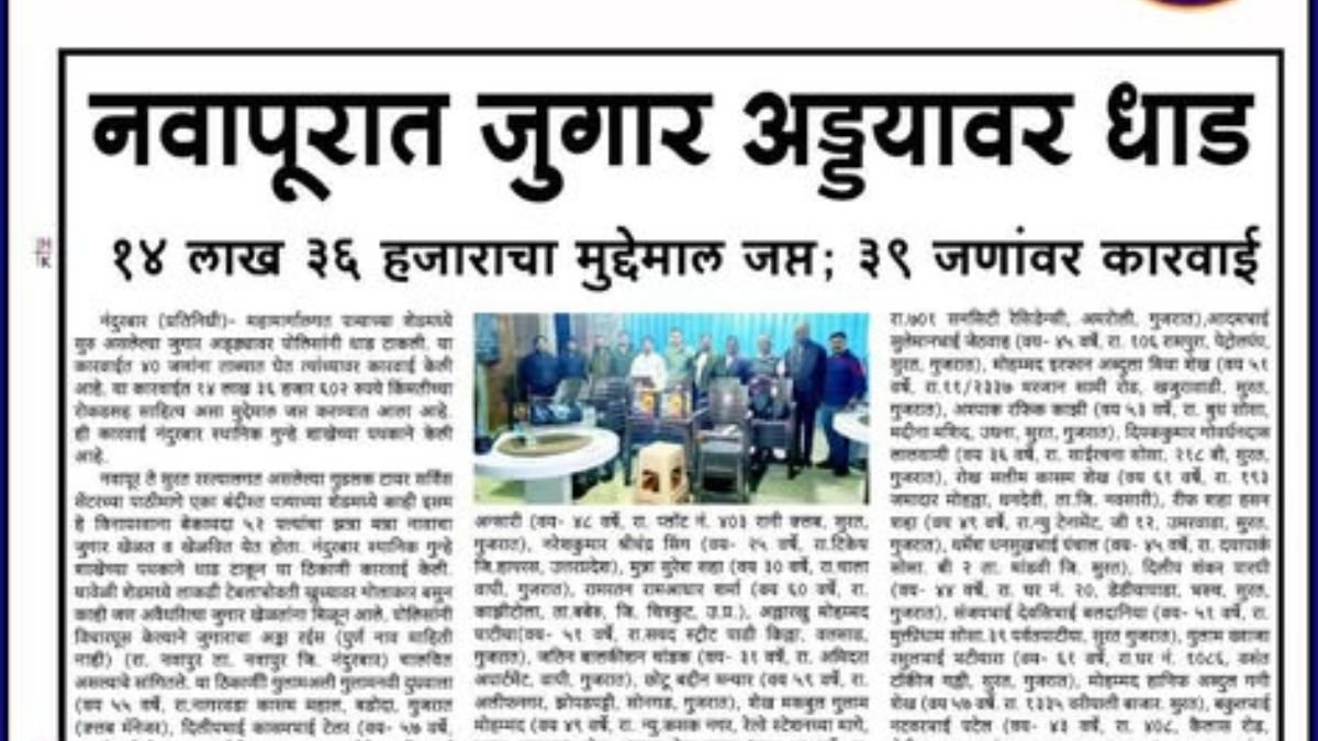 मा. पोलीस अधीक्षक श्री. श्रवण दत्त एस. (भा.पो.से.) यांच्या मार्गदर्शनाखाली व स्थानिक गुन्हे अन्वेषण शाखा, नंदुरबार यांच्या संयुक्त कारवाईत ही धाड पार पडली ![]()
