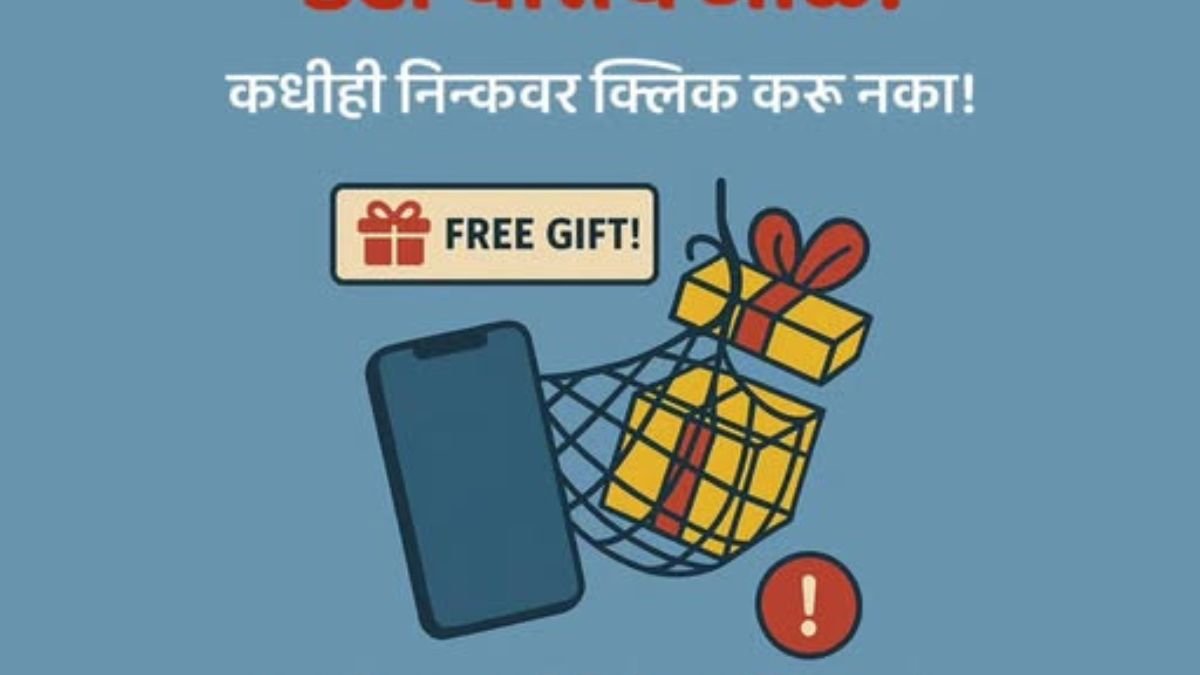 Cybercrime, Free Gift Scam, Online Fraud, Data Theft, Cyber Security, Maharashtra Cyber, Phishing Alert, Mobile Safety, Digital Awareness, Cyber Threats, Online Safety, Social Media Scam, Personal Data Leak, Suspicious Links, Online Gift Trap, Cyber Helpline, Password Safety, Internet Safety Tips, Marathi Cyber Alert, Cybercrime Reporting
