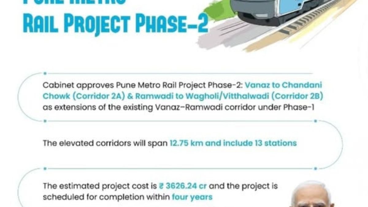 The Union Cabinet has approved the extension of Pune Metro Phase-2 (2A: Vanaz to Chandni Chowk) and Ramwadi to Wagholi/Vitthalwadi (2B) and Pune Metro Phase-1 (Vanaz to Ramwadi).