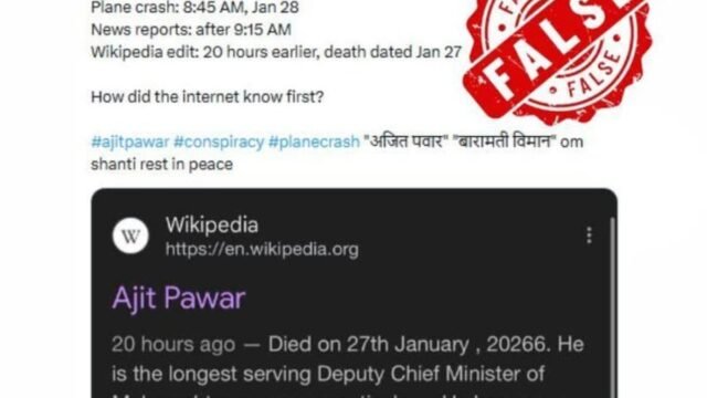 Home महाराष्ट्र उपमुख्यमंत्री अजित पवार यांच्या विमानाचा अपघात होण्याच्या २१ तास आधीच विकिपीडियाने अजित... महाराष्ट्र उपमुख्यमंत्री अजित पवार यांच्या विमानाचा अपघात होण्याच्या २१ तास आधीच विकिपीडियाने अजित पवार यांच्या पेजवर त्यांच्या मृत्यूची तारीख अपडेट केली होती. January 31, 2026 2 Wikipedia had updated the date of death on Ajit Pawar's page 21 hours before Deputy Chief Minister Ajit Pawar's plane crash. उपमुख्यमंत्री अजित पवार यांच्या विमानाचा अपघात होण्याच्या २१ तास आधीच विकिपीडियाने अजित पवार यांच्या पेजवर त्यांच्या मृत्यूची तारीख अपडेट केली होती.
