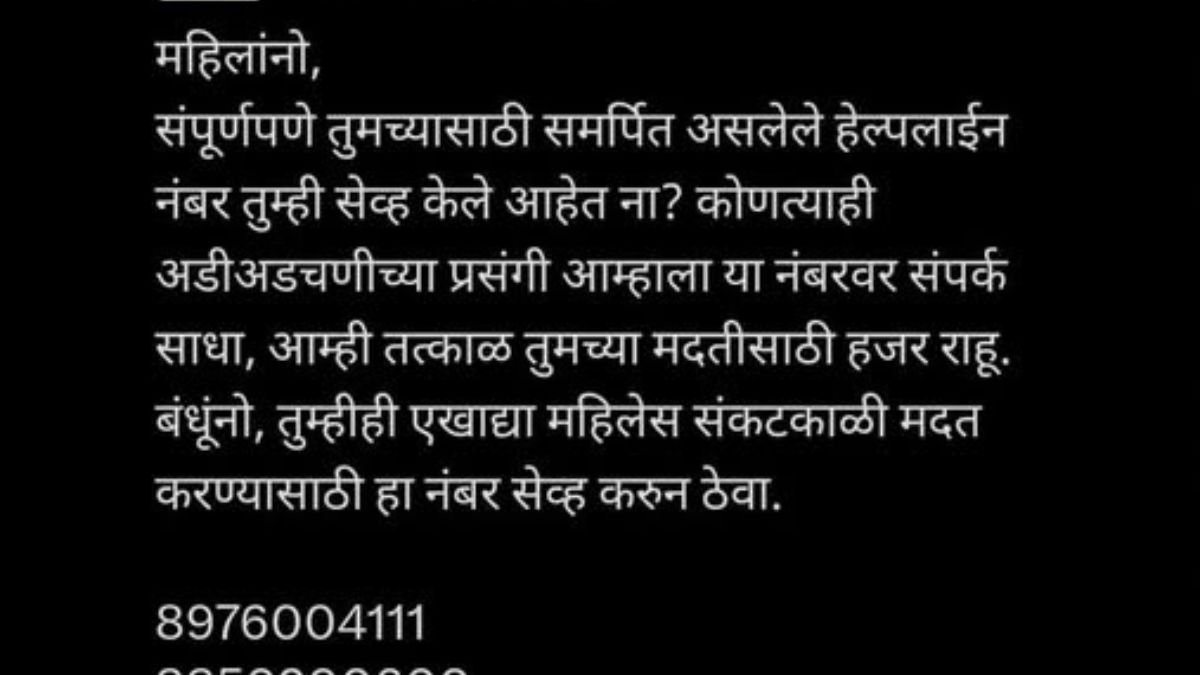 Home महाराष्ट्र महिलांनो, मदतीसाठी वरील अत्यावश्यक हेल्पलाईन क्रमांक सेव्ह करा. अडचणीच्या महाराष्ट्र महिलांनो, मदतीसाठी वरील अत्यावश्यक हेल्पलाईन क्रमांक सेव्ह करा. अडचणीच्या October 31, 2025 11 Women, save the above essential helpline numbers for help. In case of trouble अडचणीच्या वेळी त्वरित संपर्क साधा, आम्ही मदतीसाठी तत्पर आहोत. #HereToHear #WomenSafetyHelplines #WomenSafety #MaharastraPolice #तिची_सुरक्षा #आम्ही_आहोत