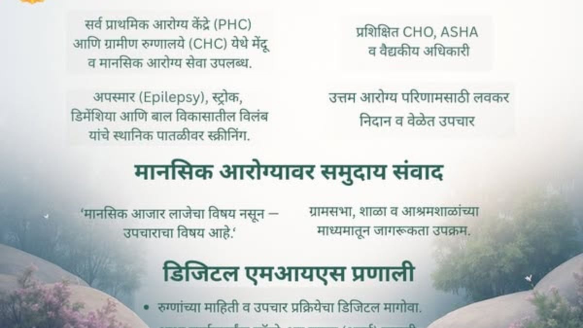 ग्रामसभा, शाळा, आश्रमशाळा आणि स्थानिक समुदायांमधून मानसिक आरोग्याविषयी जागरूकता निर्माण करण्यासाठी अभियान राबविण्यात येत आहे.